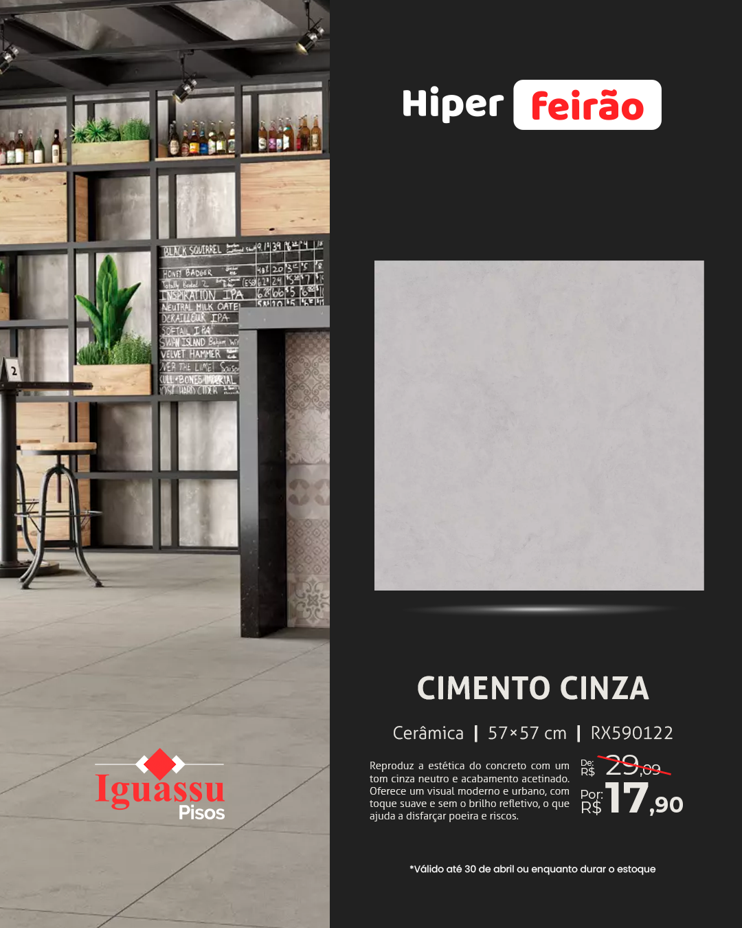 Piso Lef Cimento Cinza 57×57