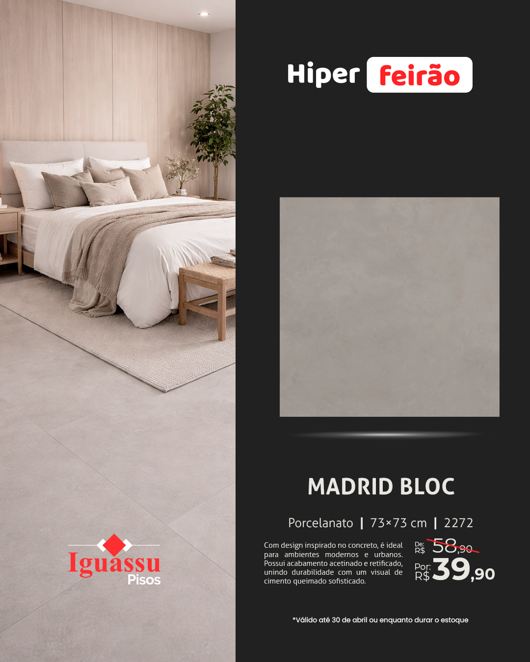Porcelanato Delta Madrid Bloc 73×73 Acetinado