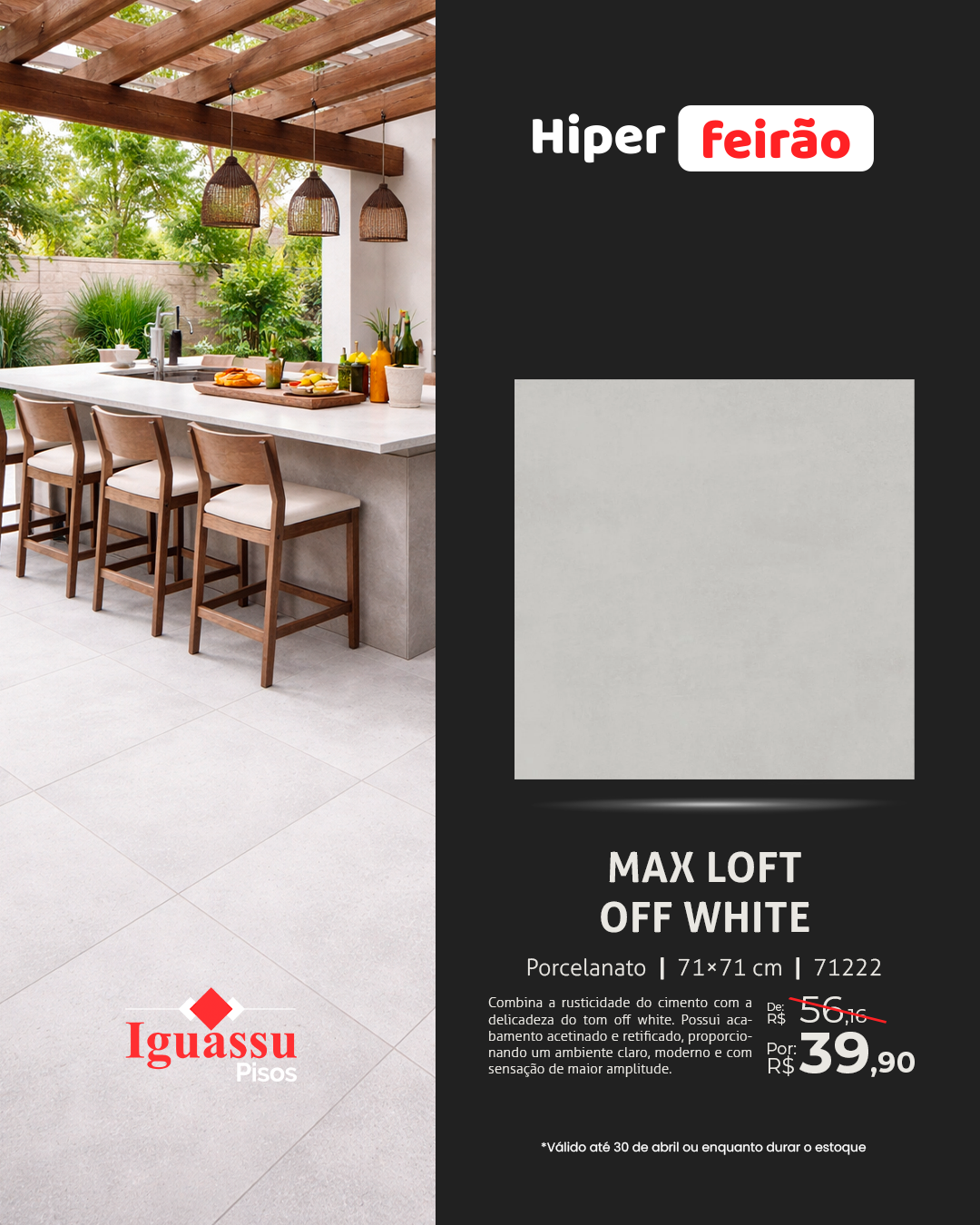 Porcelanato Embramaco Max Loft Off White 71×71 Acetinado