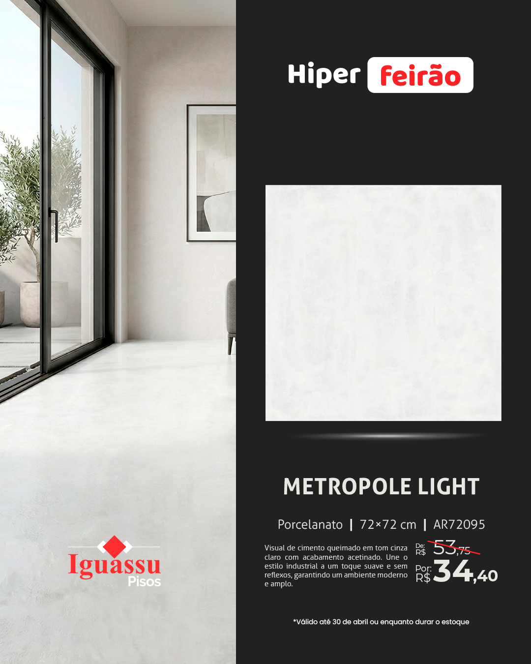 Porcelanato Via Rosa Metropole Light 72×72 Acetinado
